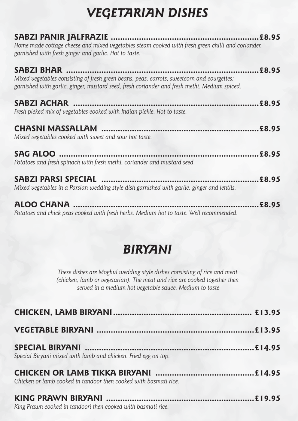 TAKEAWAY Menu