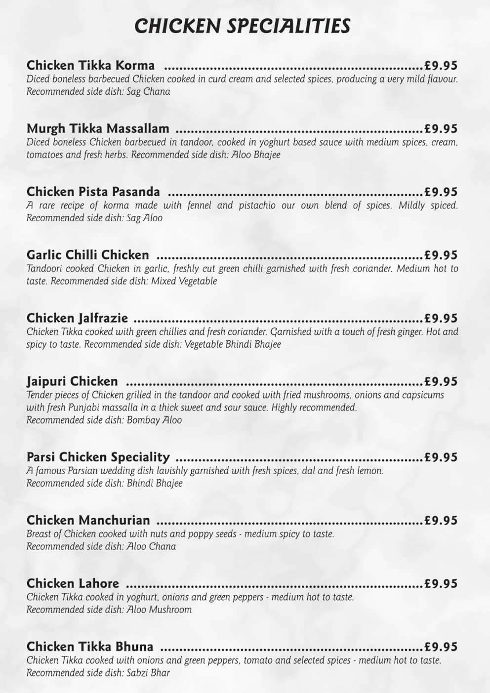 Dinein Menu